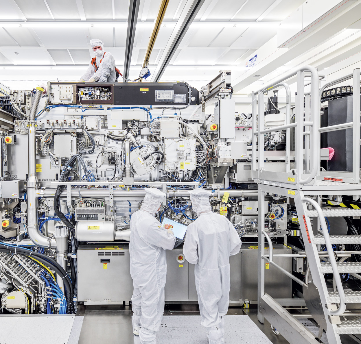 Más paradojas… Para dibujar los circuitos de algo tan pequeño como un chip (algunos tienen el tamaño de un virus), hace falta un armatoste tan grande como un autobús. Así son los equipos de litografía de luz ultravioleta extrema que fabrica y exporta ASML. Utiliza luz invisible a los ojos, de longitudes de onda muy corta, para dibujar los patrones sobre obleas de silicio. Son máquinas gigantescas, de 180 toneladas. Se necesitan cuatro Boeing 747 para transportar sus componentes, que hay que ensamblar en la fábrica del cliente. Se tarda un año en montar.
