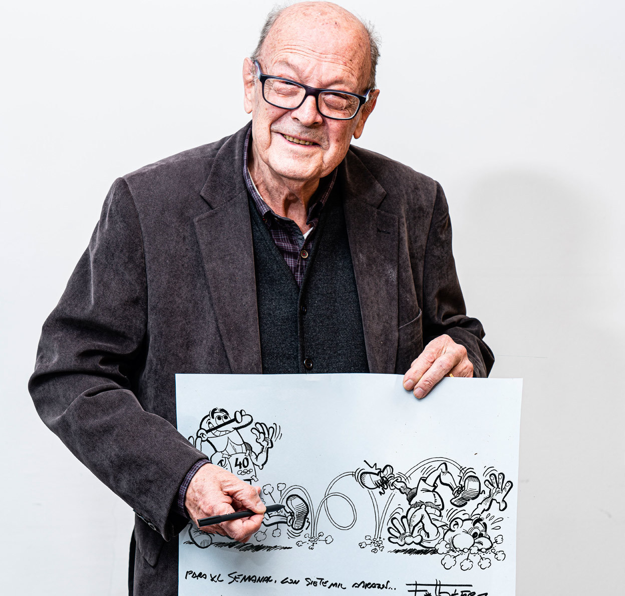 De su lápiz han salido algunos de los personajes más entrañables y queridos de la historia del cómic nacional. Hablamos con él cuando publicó Mortadelo y Filemón se van a las Olimpiadas de Tokio. Repasó su vida, nos hizo una viñeta y nos dijo: «Se me caerá la cabeza encima del tablero y será el final. Estoy muy satisfecho con todo lo que he hecho. ¡Ha sido bonito!».