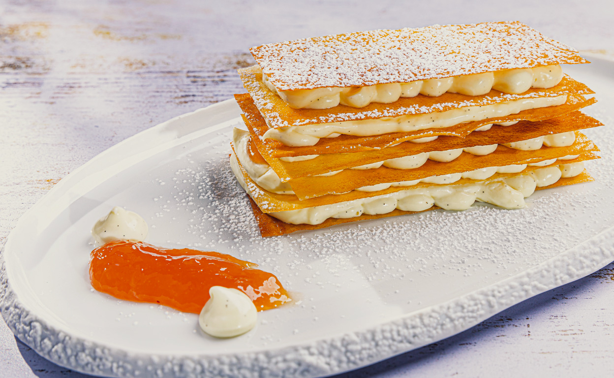 Milhojas de crema montada y naranja