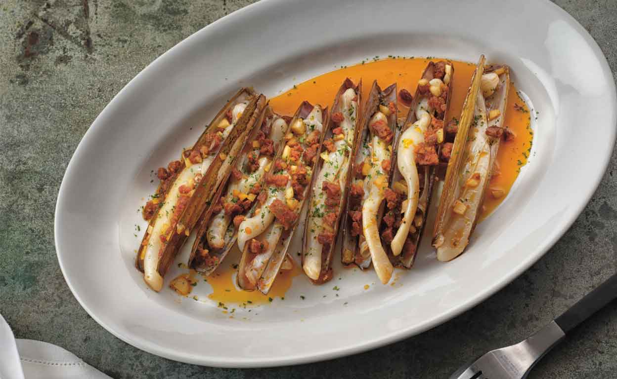 Recetas de Martín Berasategui Navajas con chorizo y 'txakoli'