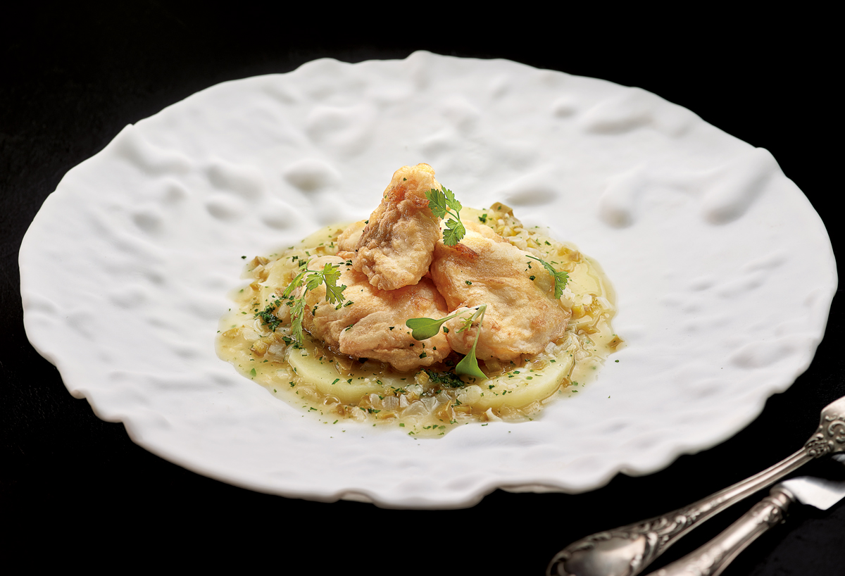 Recetas de Martín Berasategui Patatas en salsa verde con rape rebozado