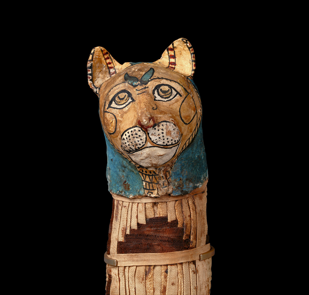 Su momificación era importante. A veces la cabeza era una máscara de cartonaje con los ojos, las orejas o los bigotes del animal pintados con gran detalle. Las había de calidades diferentes. Había a su vez timos: algunas momias solo contenían unos cuantos huesos; otras eran falsificaciones fabricadas con un armazón vegetal hábilmente envuelto en cartonaje decorado...