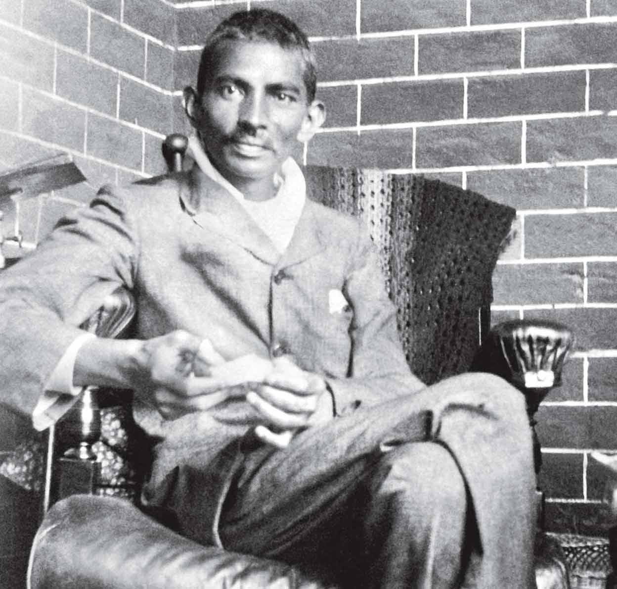 Andén de la estación de ferrocarril de Pietermaritzburg, la capital del antiguo reino zulú de Natal en Sudáfrica. Gandhi, un muchachito de corta estatura muy moreno, vestido como un petimetre, traje de lino crudo y sombrero, aguardaba la llegada del tren. En su rostro atezado de rasgos amables destacaban unos ojos almendrados de mirada vivaz, unas orejas de soplete y un bigotazo con el que intentaba compensar la parvedad de su figura.
