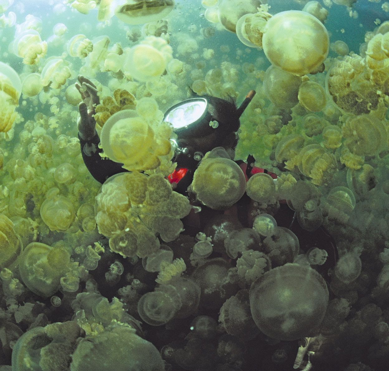 La medusa 'melena de león' vive mar adentro y se han hallado ejemplares con tentáculos de hasta 35 metros. Se alimenta de peces y otras medusas, y su picadura, aunque molesta, no suele ser grave. Hay unas 1500 especies de medusas: algunas tan diminutas como un grano de arena; otras tan pesadas como un ñu. Y, por muy frágiles que parezcan, son increíblemente resistentes, obras maestras de la evolución. A lo largo de 600 millones de años han sobrevivido a drásticos cambios en los océanos sin haber tenido que sufrir grandes modificaciones.