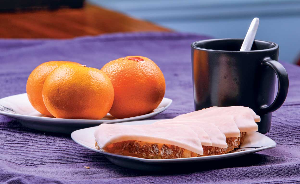«Un poquito de fruta; una rebanada de pan de calidad con aceite de oliva y pavo; y un café. A media mañana tomo un pincho de tortilla o algo de embutido».