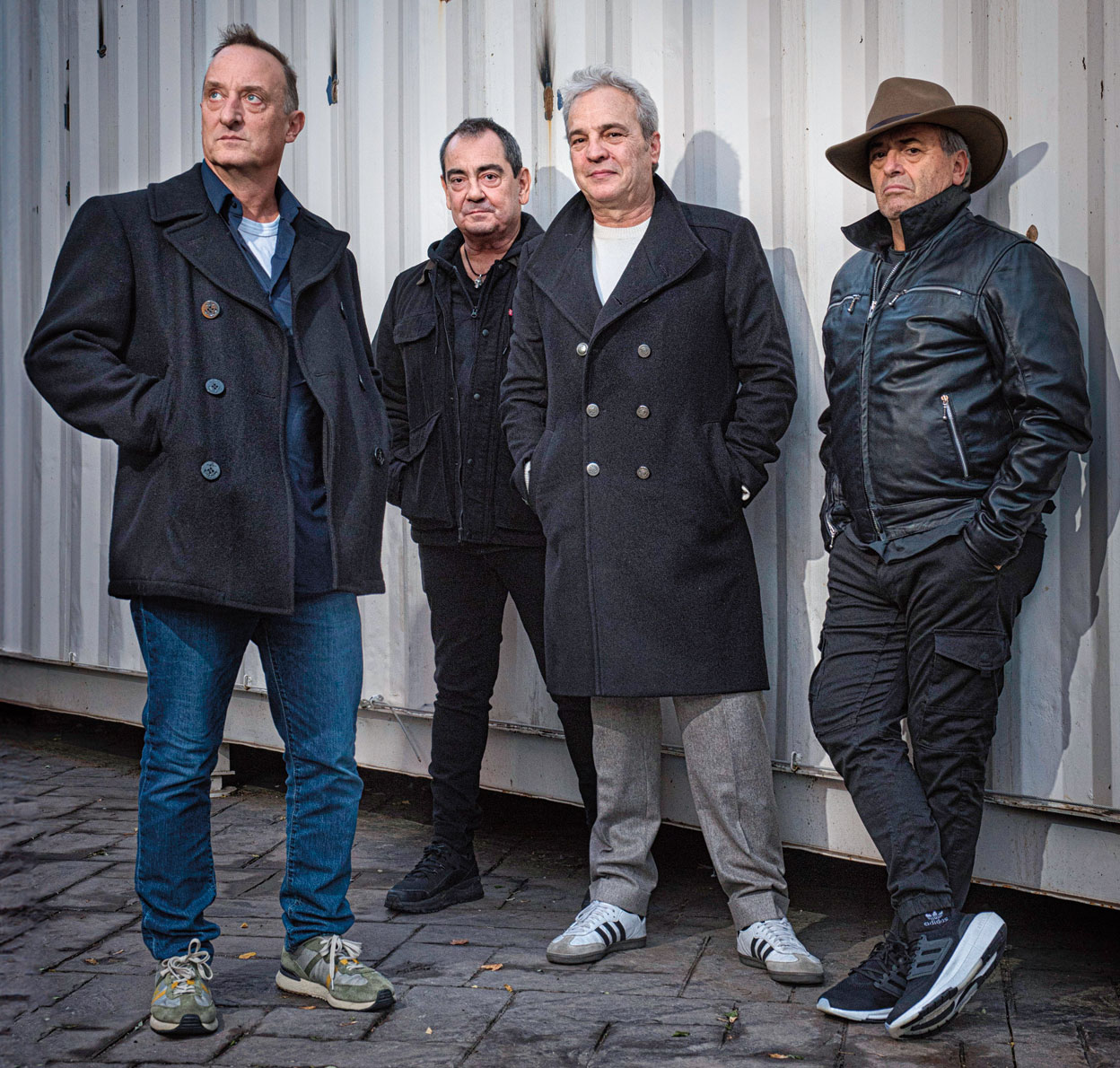 Se conocen tanto que tienen clarísimo quién va a llegar tarde: Javi Molina, el batería. «Nunca te decepciona». Él y David Summers amigos desde los 7 años, formaron el grupo punk Los Residuos. En el 82, con algo más de pop, se unieron a otro colega, Dani Mezquita, y se cambiaron el nombre a Hombres G. El último en llegar fue Rafa Gutiérrez, a quien conocieron en una actuación de los hijos de Rocío Dúrcal en TVE. Lo que sucedió a continuación nadie se lo esperaba. Ellos, los que menos. Millones de discos vendidos, dos películas, fans enfervorecidas ('chicas cocodrilo') escalando la fachada de un hotel para entrar en su habitación… Cuarenta años después, son el único grupo español de los 80 que sigue llenando estadios y, lo que es más difícil: siguen siendo amigos y pasándoselo bien. Y se les nota. Lo celebran con Del rosa al amarillo, un grandes éxitos con el que presumen de currículo y rinden tributo a Manuel Summers (director de la película homónima que, en 1963, ganó la Concha de Plata), padre de David y padrino de esta banda que disfruta hoy de una segunda juventud.