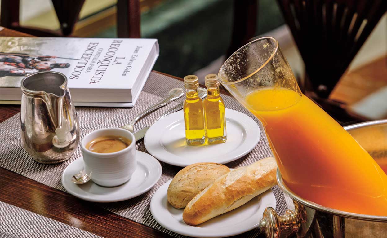 «Leche manchada de café; el zumo de dos naranjas y un limón; y una tostada con aceite de Jaén, porque soy olivarero e hijo de olivareros».